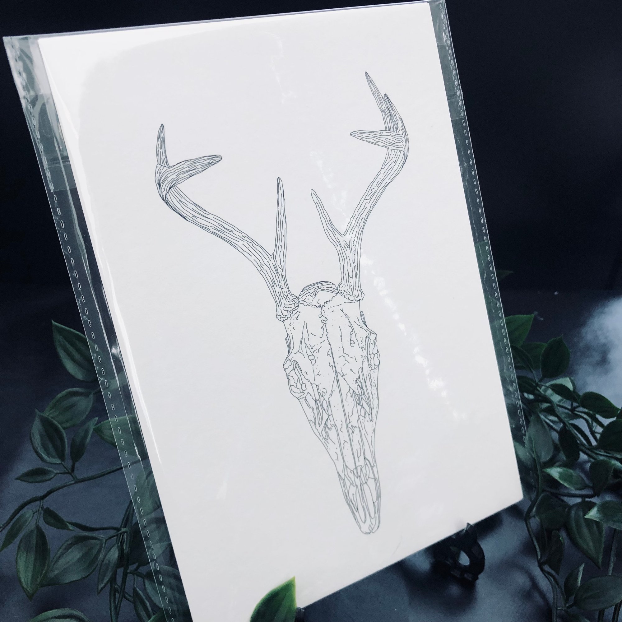 Lovely detailed digital art deer head skull print. Perfect for your home or as a gift.